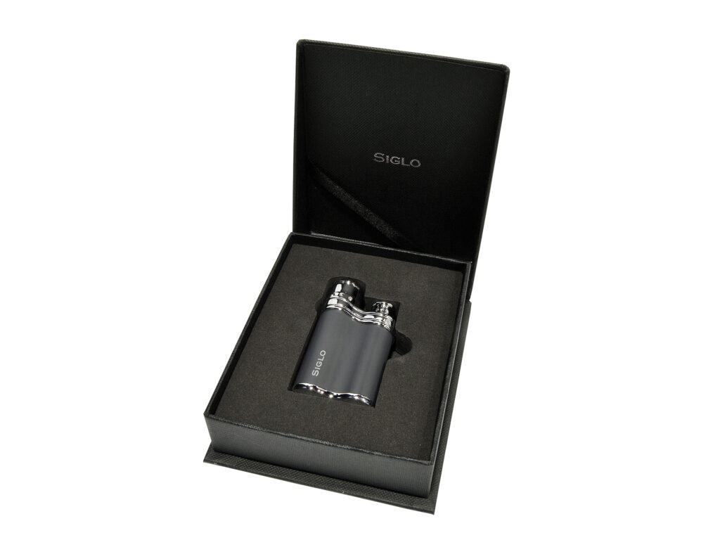 Stylový tryskový zapalovač Siglo Bean Shape. Kvalitně zpracovaný zapalovač, jehož tvar připomíná fazolku, dokonale padne do ruky. Plamen zapalovače spolehlivě zapálí nejen cigarety, ale i doutníky. Povrch zapalovače je kvalitně provedený a zalakován. Ve spodní části najdete plnící ventil plynu a nastavení intenzity plamene. Zapalovač je dodáván v dárkové krabičce s logem. Výška 6,5 cm.