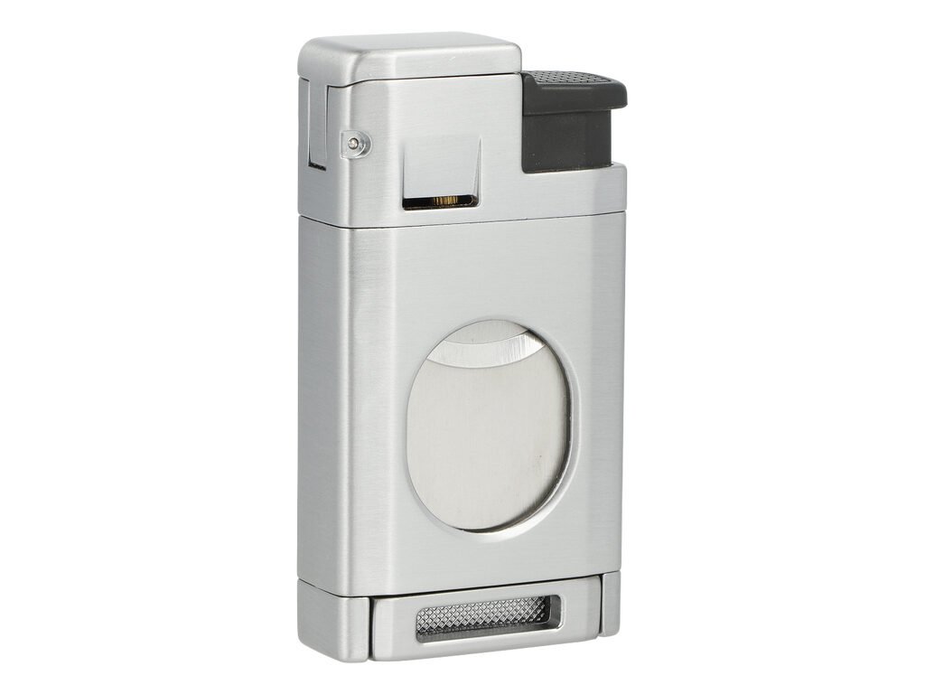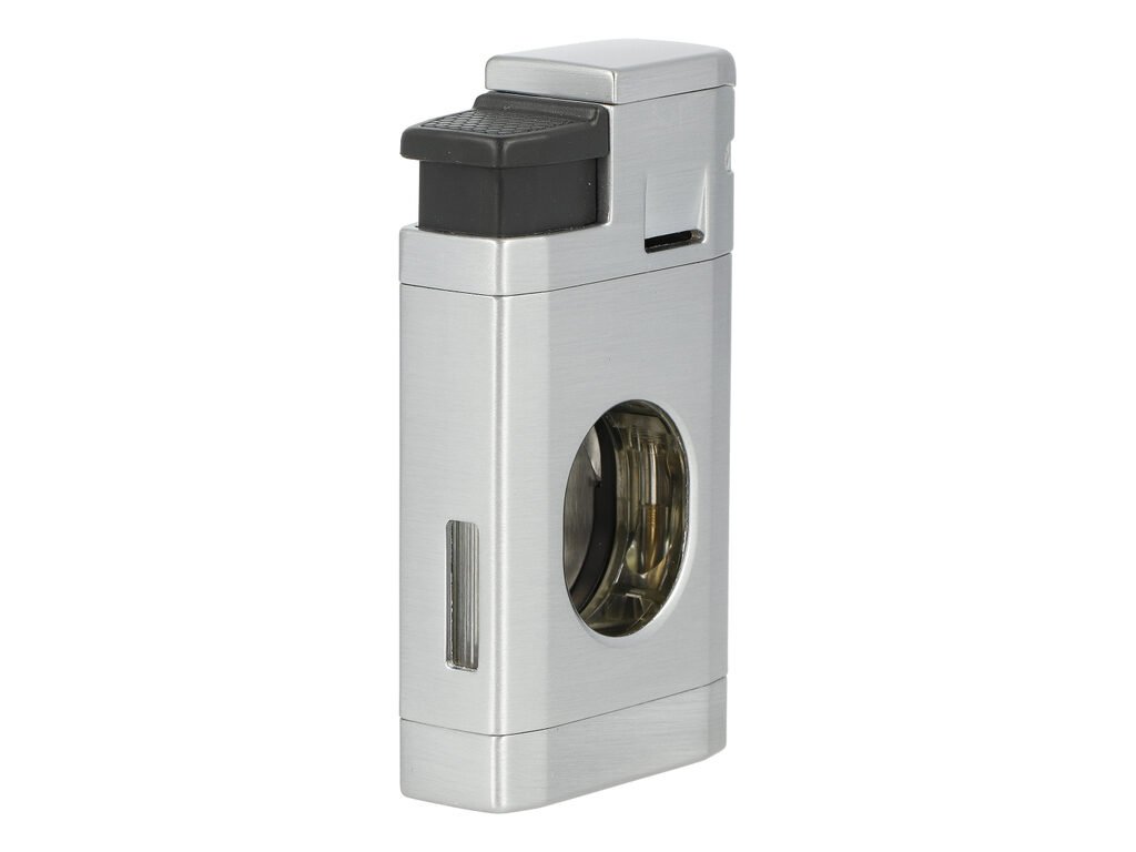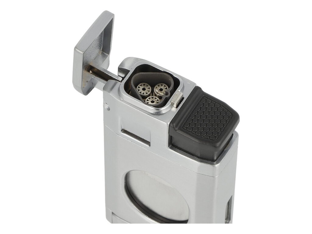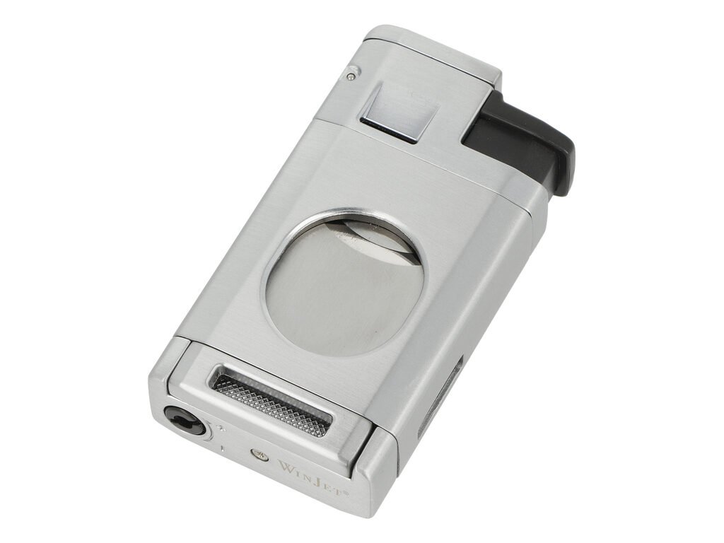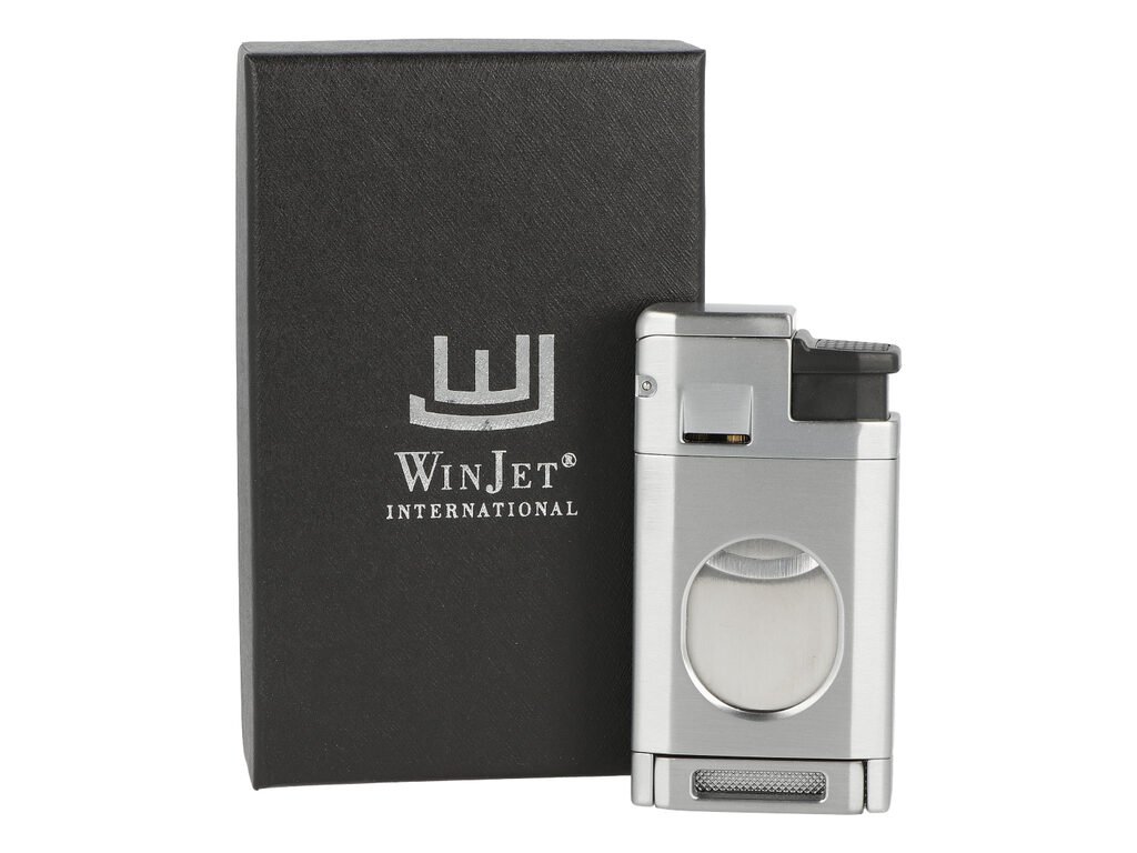 Doutníkový zapalovač Winjet Premium 3xjet s integrovaným ořezávačem doutníků. Atraktivní tryskový zapalovač na doutníky v chromovém polomatném provedení má jemně broušený povrch. Praktická kombinace zapalovače a doutníkového ořezávače se vždy kuřákovi doutníků hodí. Vysunovací dvoubřitý ořezávač s ostrými břity zajistí rychlý a čistý ořez doutníku. O zapálení doutníku se postarají tři trysky, které po stisknutí a odklopení krytu prostoru pro zapálení vyvinou silný plamen. Okénko na boční straně Vám umožní kontrolu hladiny plynu v zapalovači. Na spodní části najdeme plnící ventil plynu a regulaci intenzity plamene. Zapalovač je dodávaný v dárkové krabičce.