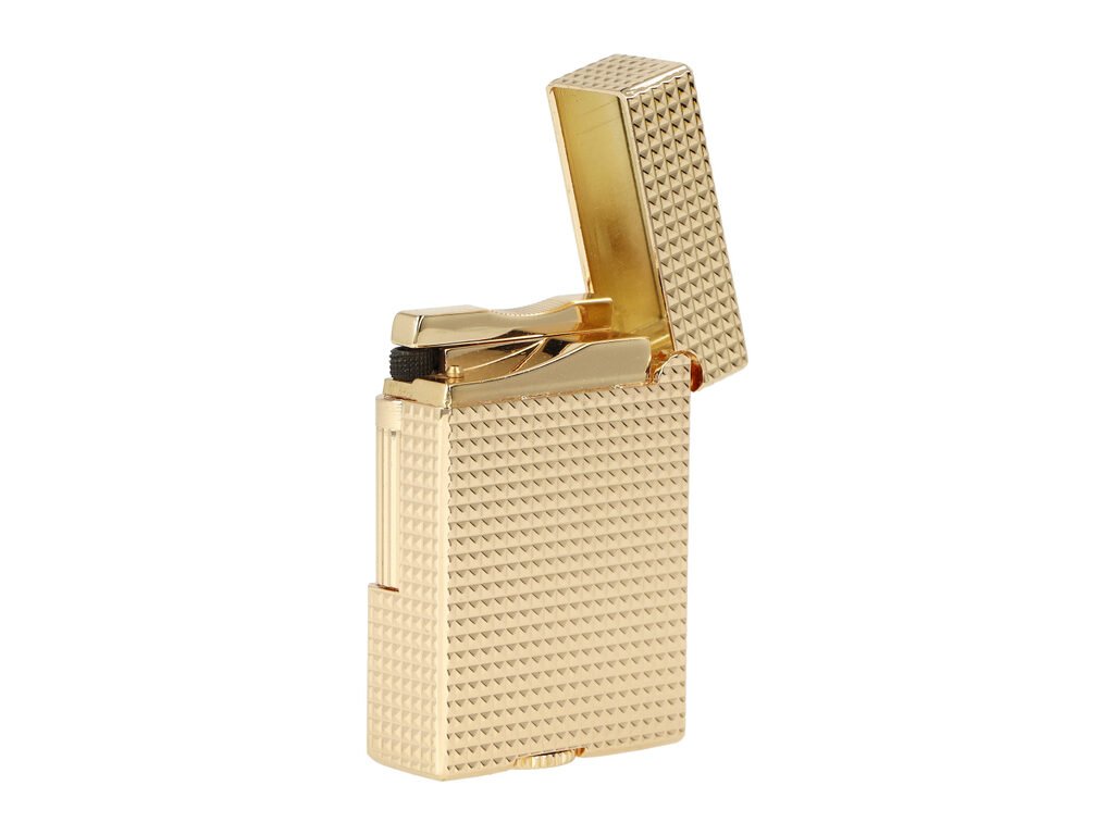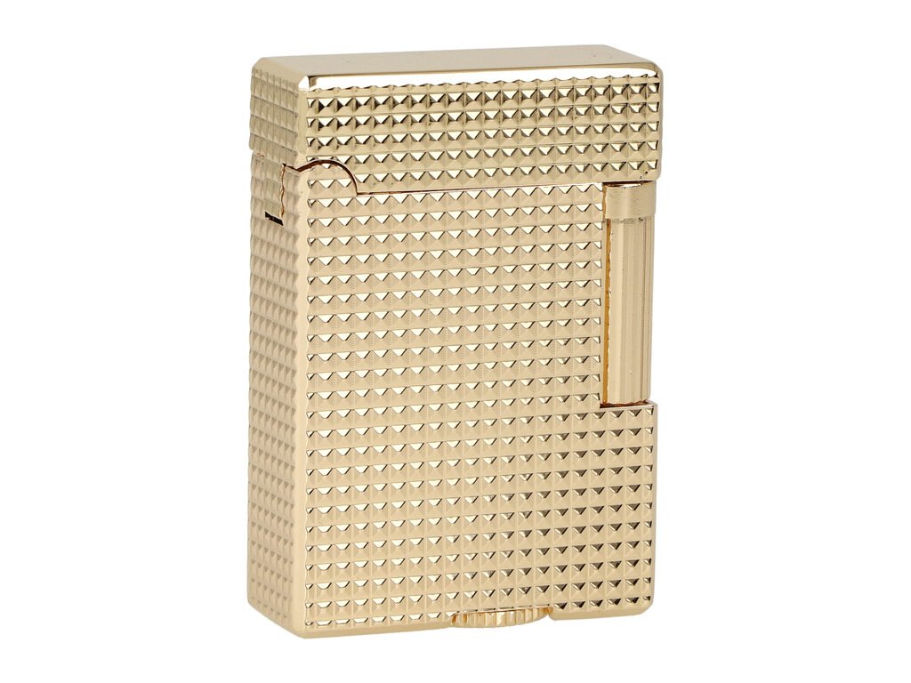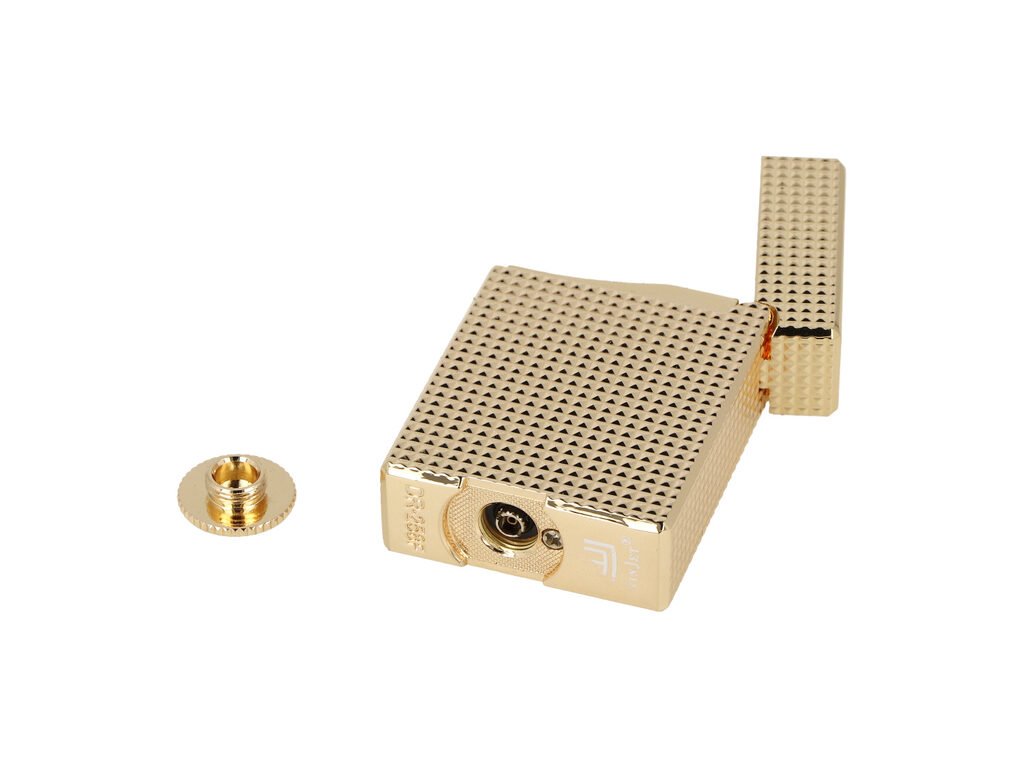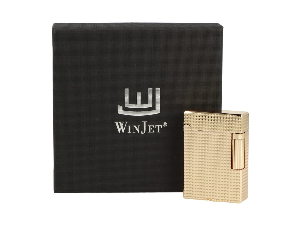 Plynový zapalovač Winjet Falun Flint s kamínkovým zapalováním. Kovový zapalovač ve zlaté barvě má leštěný povrch. Elegantní kamínkový zapalovač je zdobený 3D reliéfem, díky kterému se dobře drží v ruce. Po odklopení horního krytu uslyšíme krásné "pink" zvuk, který je známý u zapalovačů S.T. Dupont. Otočením válcem škrtacího mechanismu doleva dojde k zapálení plamene. Na spodní straně kamínkového zapalovače najdeme pod šroubovacím krytem plnící ventil plynu a ovládání intenzity plamene. Pří výměně kamínku odsuneme horní kryt - držák kamínku, který drží pružina. Do prostoru pro kamínek vložíme nový a kryt opět vrátíme zpět. Zapalovač je dodáván v dárkové krabičce.