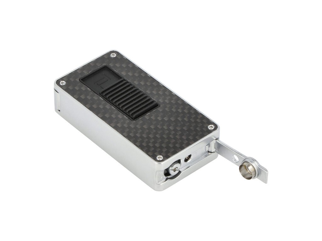 Elegantní doutníkový zapalovač Porsche Design 3648 Carbon s integrovaným vyštípávačem je kovový tryskový zapalovač v carbonovém lesklém provedení kombinovaný s pololesklými stříbrnými prvky, který má opravdu výkon. Tento masivní turbo zapalovač je vybavený pěti tryskami, díky kterým vznikne silný plochý plamen a velký žár. Takový plamen lehce zapálí Váš oblíbený doutník během chvilky a vy si můžete užívat jeho chuť.