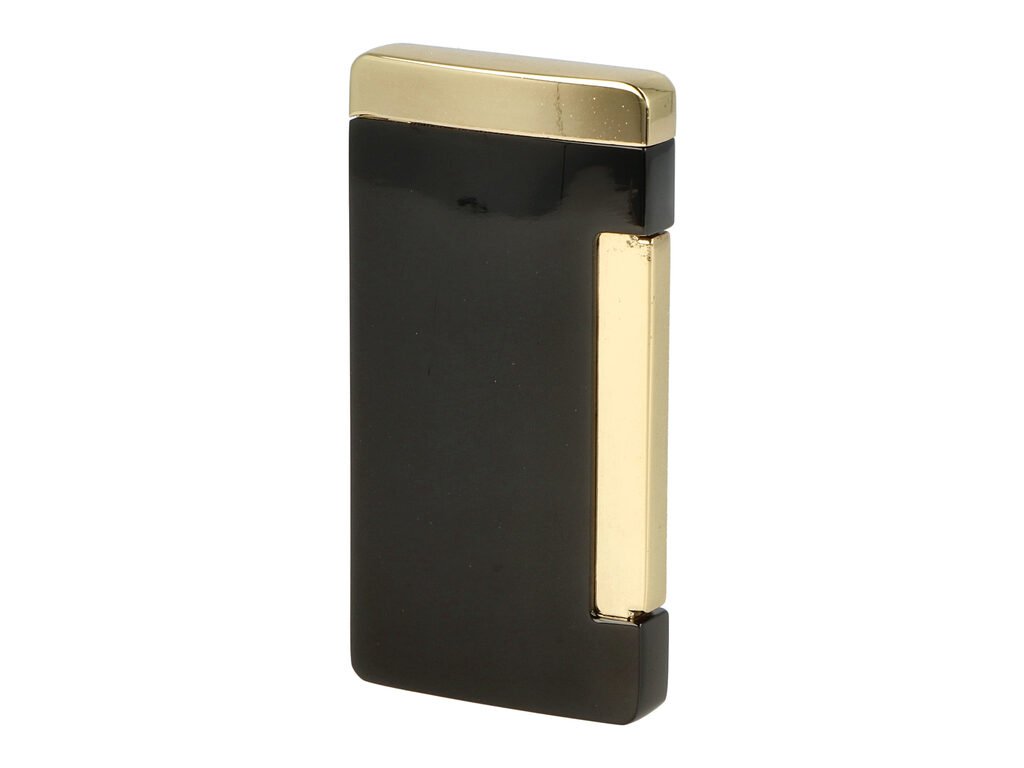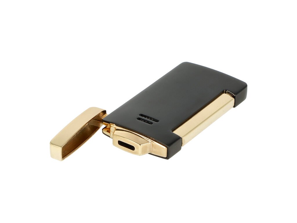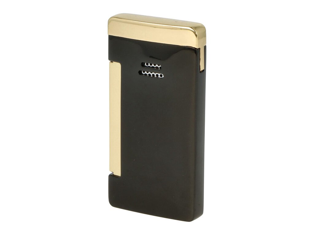 Tryskový zapalovač Eurojet Holm gold s plochým plamenem je elegantní kovový turbo zapalovač vhodný nejen na doutníky, který je v černém lesklém provedení s prvky ve zlaté úpravě. Zadní strana je zdobená efektní perforovanou mřížku. Po otevření horního krytu a stisknutí bočního tlačítka dojde k zapálení trysky, které vytvoří širší plochý plamen.